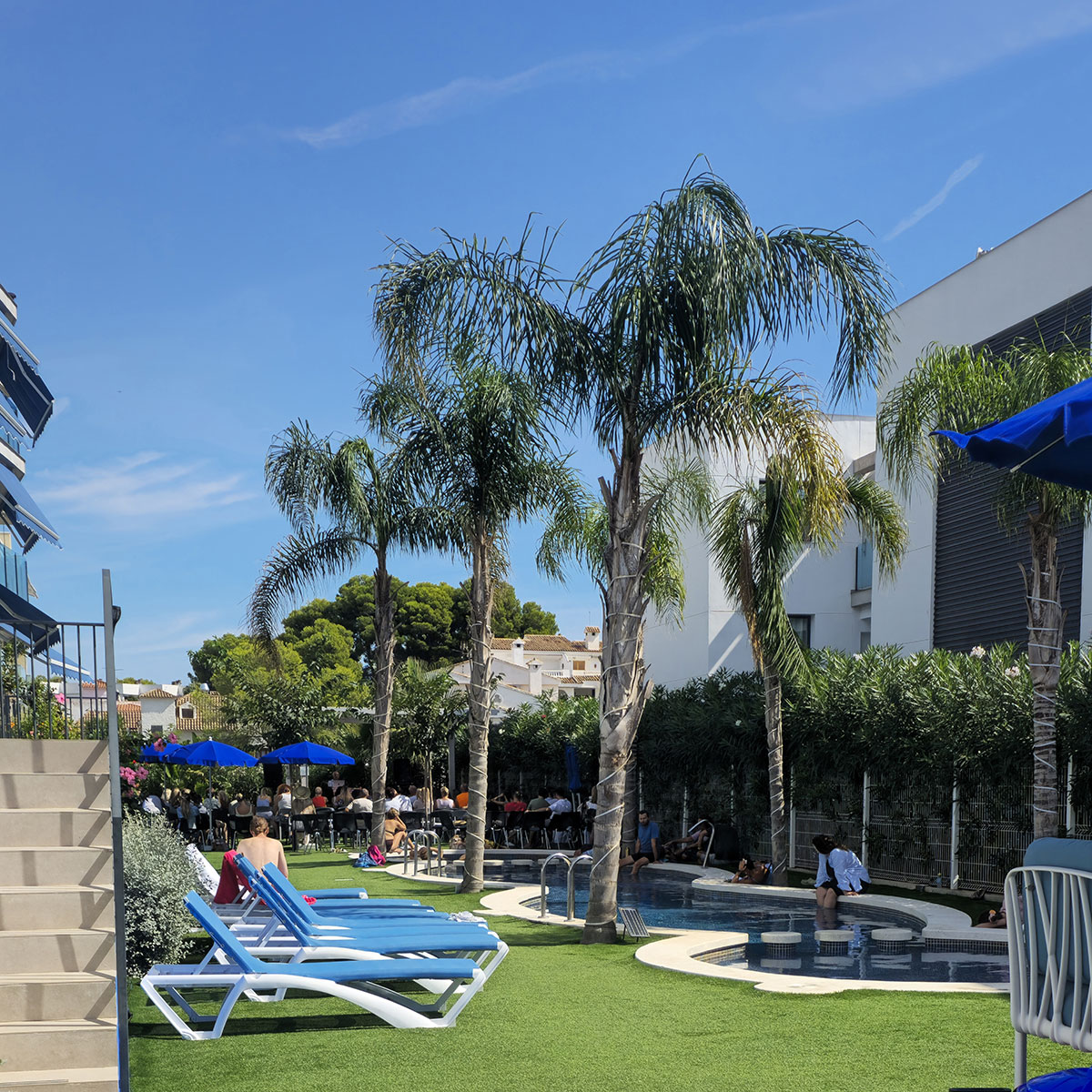 Azahar Beach Apartments & SPA is designed to streamline logistics and enhance togetherness. The complex is made up of two buildings connected by spacious gardens and shared areas, creating a safe and private environment where no travel is required.